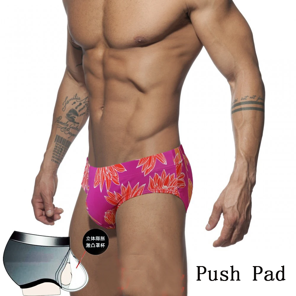 Apropiado artículo y envío fugaz. vendedor recomendado para Bañador estampado para hombre, pantalones cortos con almohadilla de realce, ropa de baño de secado rápido, calzoncillos de cintura baja, ropa de playa para Surf